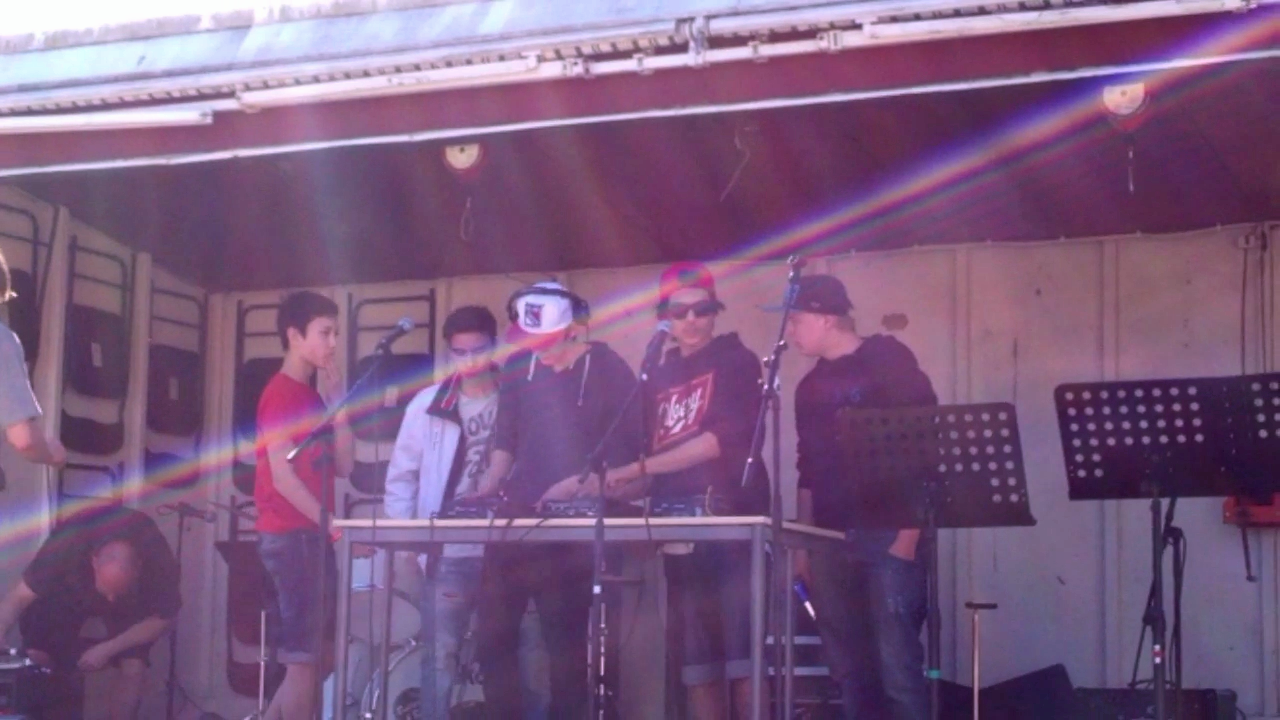 DJ Andreas, Leo, Mirsad och August på Vårmarknaden i Gråbo 2014 (Foto: Esaias Tilly)